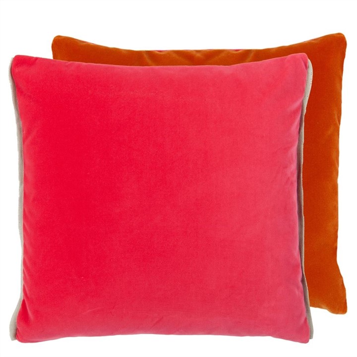 Our best-selling cotton velvet Varese is the feature in this luxurious square velvet cushion. Stylish bright fuchsia reversing to saffron and finished with a Scala linen trim in natural, this elegant cushion completes your interior scheme perfectly.