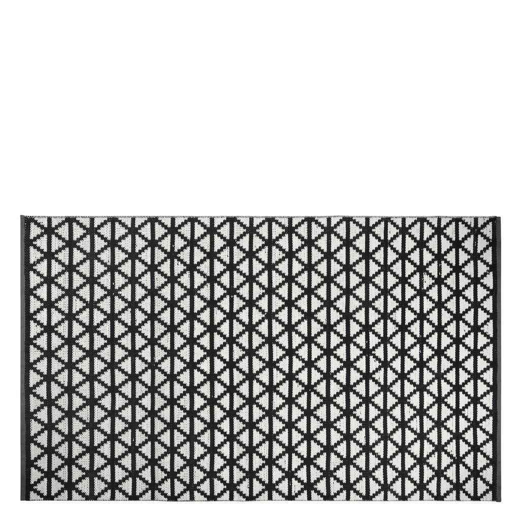 Designers Guild new range of indoor/outdoor rugs and runners are the perfect addition to your interior and exterior spaces within your home. Stylish and incredibly versatile, these intricately hand-woven flat weave rugs are constructed from a specialist polyester yarn with many practical attributes! With their durable construction, these rugs are easy to clean, lightweight and reversible. Delray Noir features a black and white geometric design and is finished at both ends with a grey woven hem. Ideal for adding pattern to any room or designed to be the perfect complement to our outdoor fabric and accessory range. Please note we do not recommend leaving these rugs outside for long periods of time.
